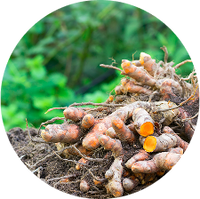 Kurkuma is een vaste plant met een wortelstok uit de gemberfamilie. De feloranje wortel, tot poeder verwerkt, geeft warme, aardse smaken met een licht pittige en bittere ondertoon.